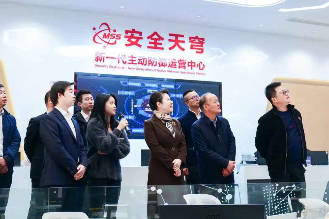 会前,梁洪涛一行莅临安恒信息安全创新体验中心及MSS天穹——新一代主动防御安全运营中心进行参观调研,深入了解了安恒信息的发展历程,包括其在数字安全领域的前沿产品、所获成就以及发展战略等,并聆听了MSS天穹——新一代主动防御安全运营中心在亚运期间的发挥的重要作用及其在安全运营领域可以为用户提供的重要支撑的相关介绍。