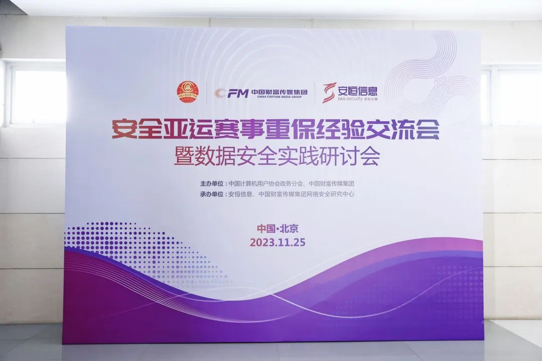 11月25日下午,安全亚运赛事重保经验交流会暨数据安全实践研讨会在新华社召开。本次活动由中国计算机用户协会政务信息化分会和中国财富传媒集团主办,中国财富传媒集团网络安全研究中心和安恒信息共同承办。
