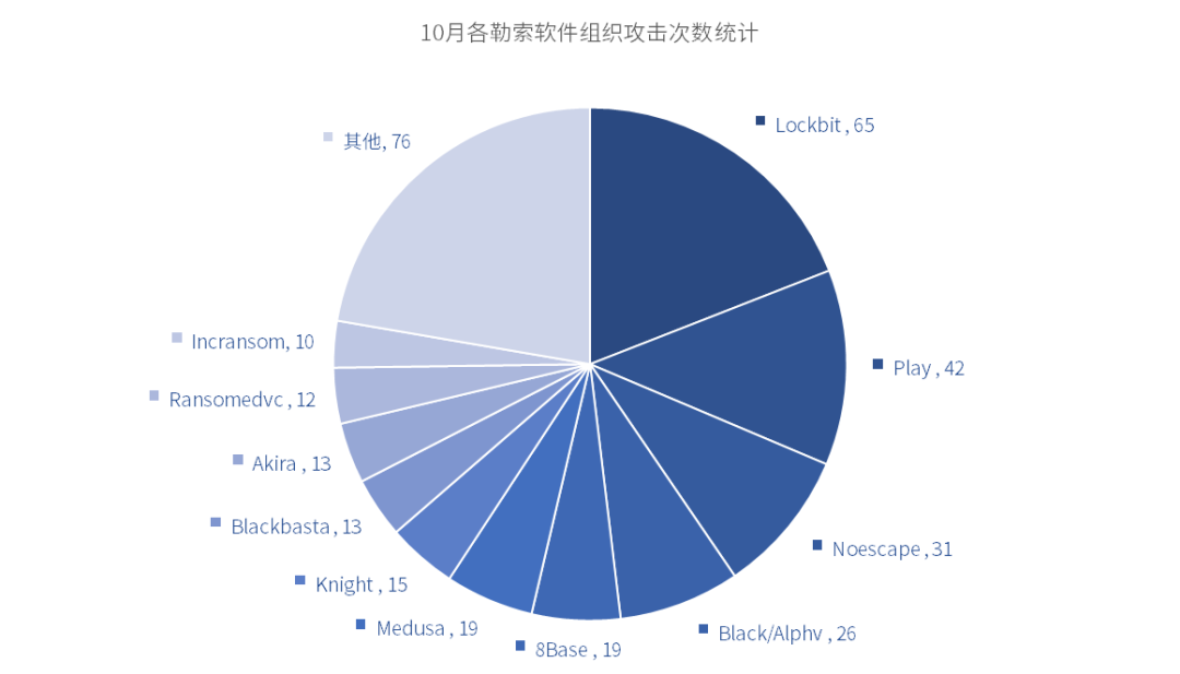 安恒信息猎影实验室跟踪全球勒索软件组织发现,勒索软件攻击威胁已经进入“高频”的新常态当中,连续8个月月均披露300余起。10月,全球公开披露的勒索事件就多达340余起,与去年同期相比,增幅达50%以上。