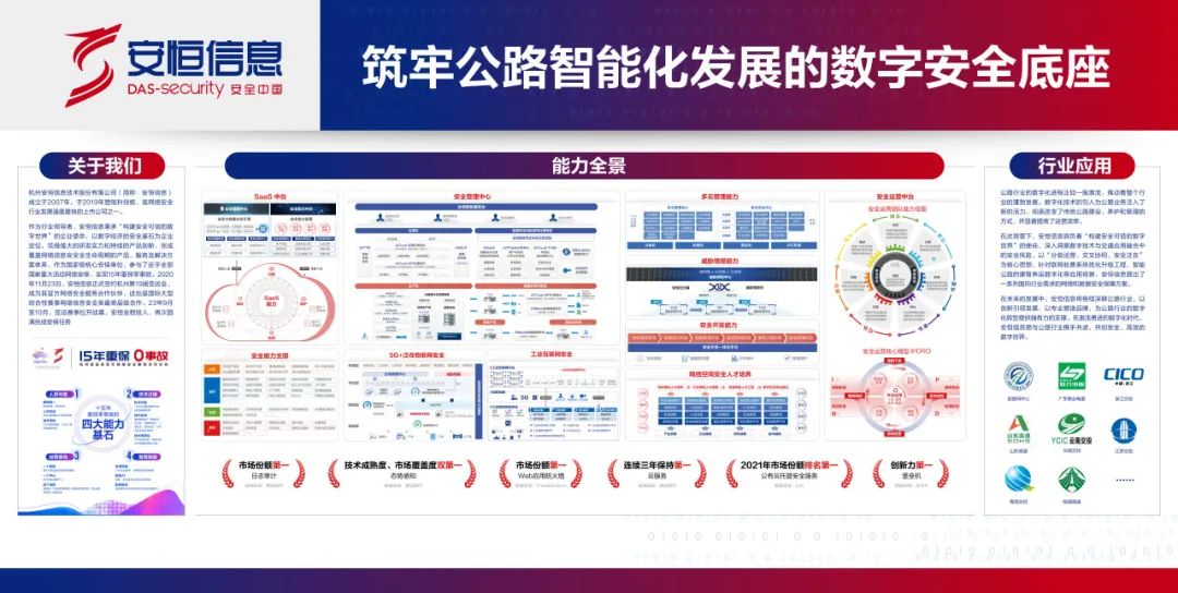 公路行业的数字化进程正如一股激流,推动着整个行业的蓬勃发展。未来,安恒信息将继续深耕公路行业,以创新引领发展,以专业塑造品牌,为公路行业的数字化转型提供强有力的支撑。在数字时代,安恒信息将发挥自身前沿科技实力与丰富落地实践经验,助力公路行业数字化发展,为其注入安全力量。