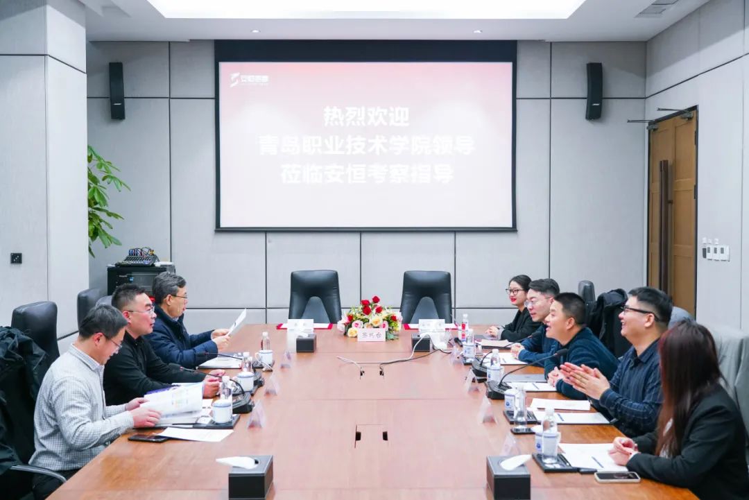 在签约仪式上,双方展开座谈,首先就各自单位情况展开介绍。安恒信息介绍了企业在校企合作、产教融合方面的丰富经验与以往成果,也详细介绍了未来与青岛职业技术学院的人才培养方案。青岛职业技术学院对安恒信息在人才培养方面的实力表示认可与肯定,并对双方在未来的深度合作表示期待。