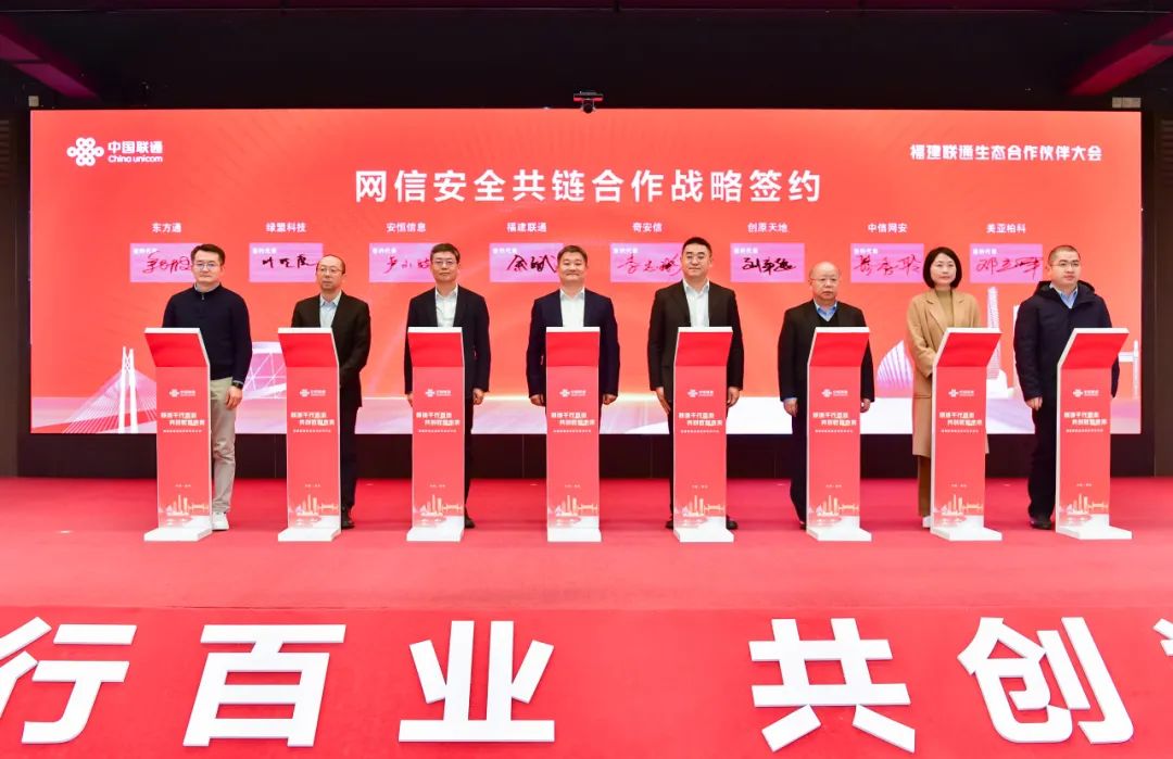 同时,会上进行了网信安全共链合作战略签约,安恒信息联合参与,将携手福建联通共同构建福建省网信安全防护体系,发挥安全优势、共促数字发展。