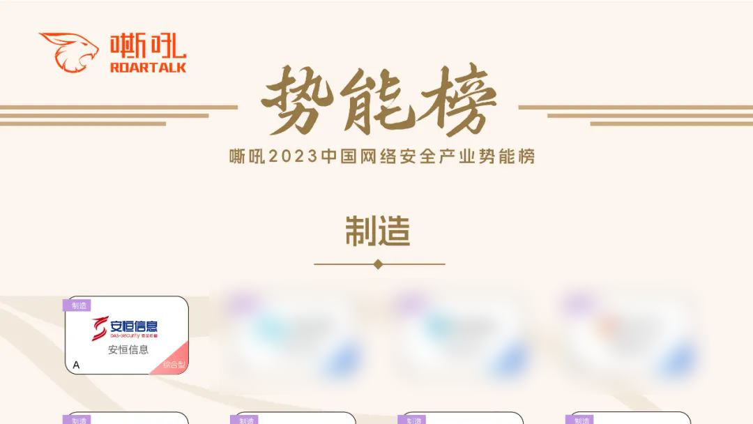 近日,嘶吼安全产业研究院《2023中国网络安全产业势能榜》以及ISC2023数字安全创新能力百强榜单发布,安恒信息入选两大榜单,斩获荣誉。