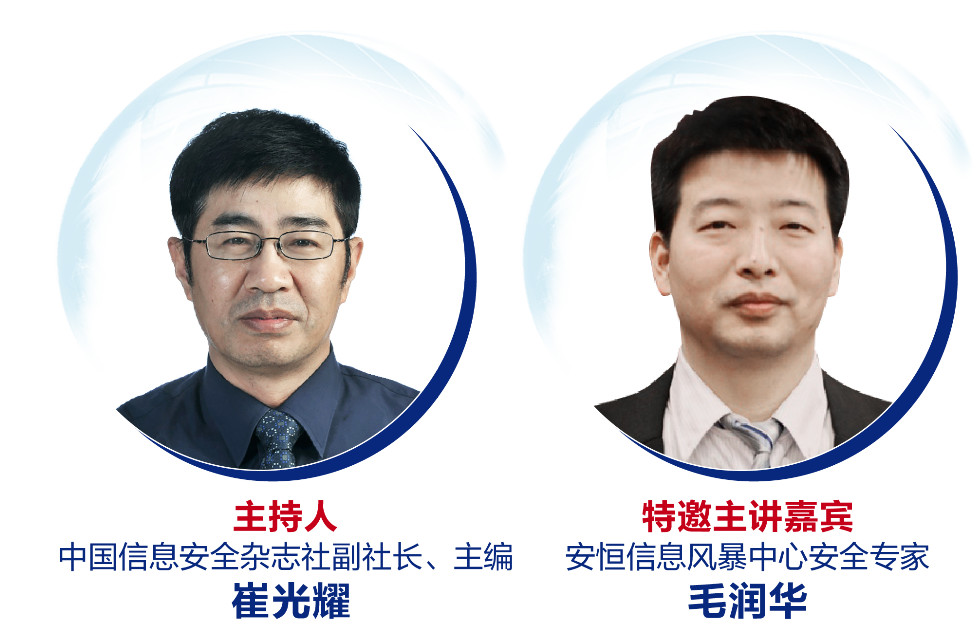 本次线上发布会邀请到中国信息安全杂志社副社长、主编崔光耀作为主持人与安恒信息风暴中心网络安全专家毛润华作为分享嘉宾一同进行了本次发布会。