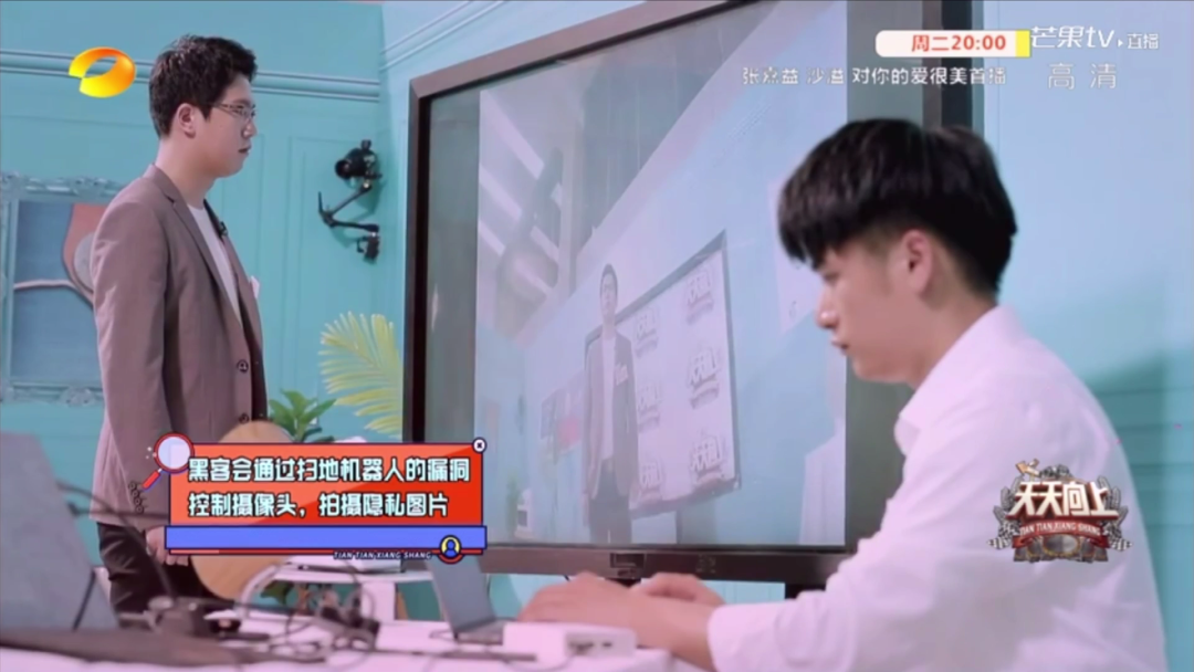 家用摄像头同样也是现下家庭里常用的智能家居设备,帮助人们外出后也能关注到家里的情况,方便对家中老人、小孩及宠物的看护,也可以是人们生活中的看家好帮手。然而,它同样存在着安全隐患,可能被入侵摄像头的黑客所控制,盗取使用者的隐密信息。节目现场同样模拟了相似场景:钟文洁和徐井源扮演“黑客”,利用漏洞控制摄像头并截获了相关视频信息。