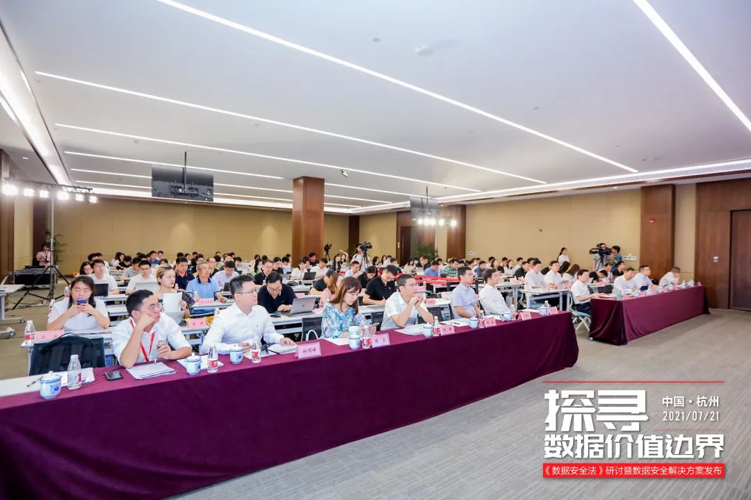 此次活动由杭州市数据资源管理局主办,浙江省大数据交易中心和杭州数据安全联盟协办,安恒信息承办。中国电子技术标准化研究院网络安全研究中心数据安全部主任胡影,浙江省委网信办网络安全和技术处处长吕永刚,杭州市数据资源管理局党组成员齐同军,安恒信息董事长范渊,安恒信息高级副总裁、首席科学家刘博,浙江省大数据交易中心总经理沈旭东,浙江移动信息技术部安全室经理徐良,浙商银行总行金融科技风险监控官骆鉴,温州理工学院副教授、温州大数据发展管理局数据资源处处长(兼)陈驰等来自监管部门、行业机构、企业的代表出席了会议,从法律、标准、监管、趋势、应用、落地等多个角度对数据安全进行了深入解析,为落实《数据安全法》、推动数据安全工作的落地实践贡献了宝贵的经验和智慧。