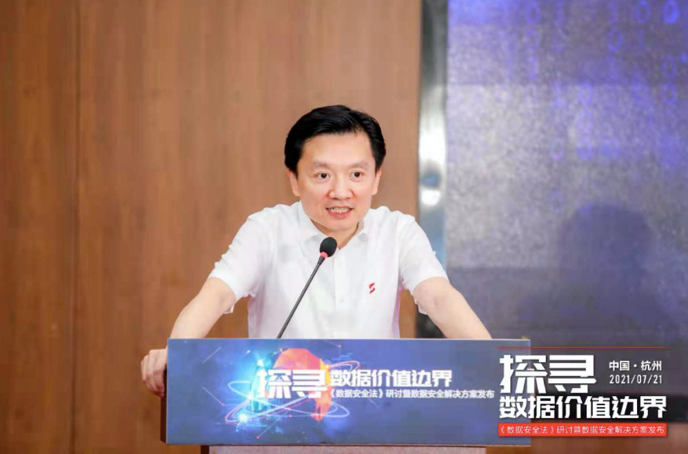 安恒信息董事长范渊在致辞中表示,《数据安全法》的发布,很重要的一点其实是数据既要保护又要利用。作为一个法律,非常清晰地提出来了这一点。所以在这一点上如何平衡数据的利用,既保护个人隐私、保护单点数据,从而进一步放大数据的价值,真正能够在可管、可控、可信、可溯源的体系中保障数据全流程安全以及实现数据的可用不可见、可用不可取,实现更多的政企数据赋能,未来还有很大的空间和场景。