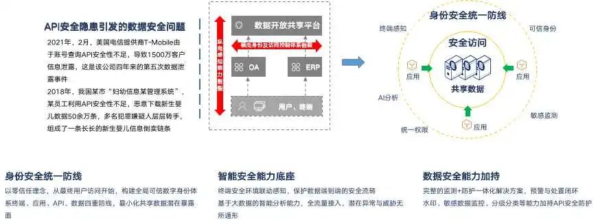 随着数据开放面逐渐扩大、数据访问量不断增加,我们预见到了开放共享过程中潜在的数据安全防护及溯源问题,例如数据访问无法追溯到最终用户、API 自身脆弱性带来的安全配置错误及注入风险、API 异常高频访问带来的数据暴露风险等。