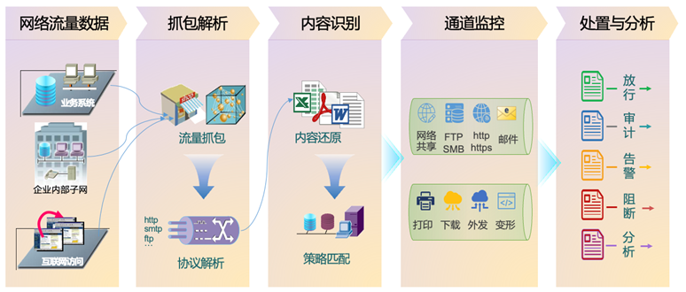 AiDLP数据防泄漏系统对通过安全域内的全流量数据的深度分析,有效识别跨域、跨境等通信行为,对敏感信息输出途径进行控制和审计,通过对外发内容进行全面的还原,甄别网络流量中是否存在限制出域的敏感价值数据,形成详细审计记录,支持对文件内容、IP地址等多因素事件的溯源分析,定位责任人。