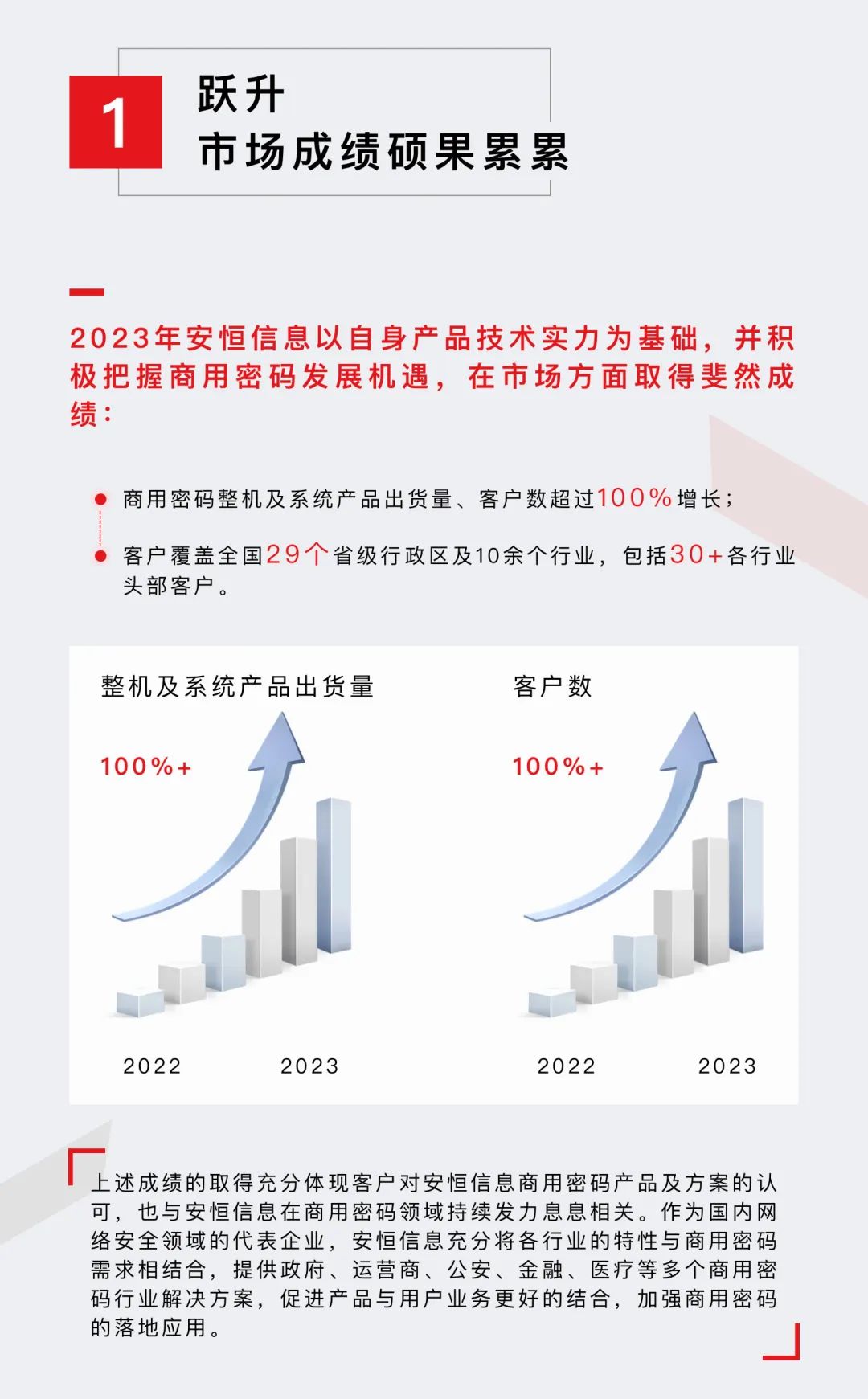 随着《商用密码管理条例》的修订通过及正式施行,商用密码受到国家及各行业的广泛重视。自2010年起便布局密码领域的安恒信息,2023年持续精进,以优质的产品及服务不断赋能广大用户,在技术创新、行业积累、市场突破等多方面均取得丰厚成果。