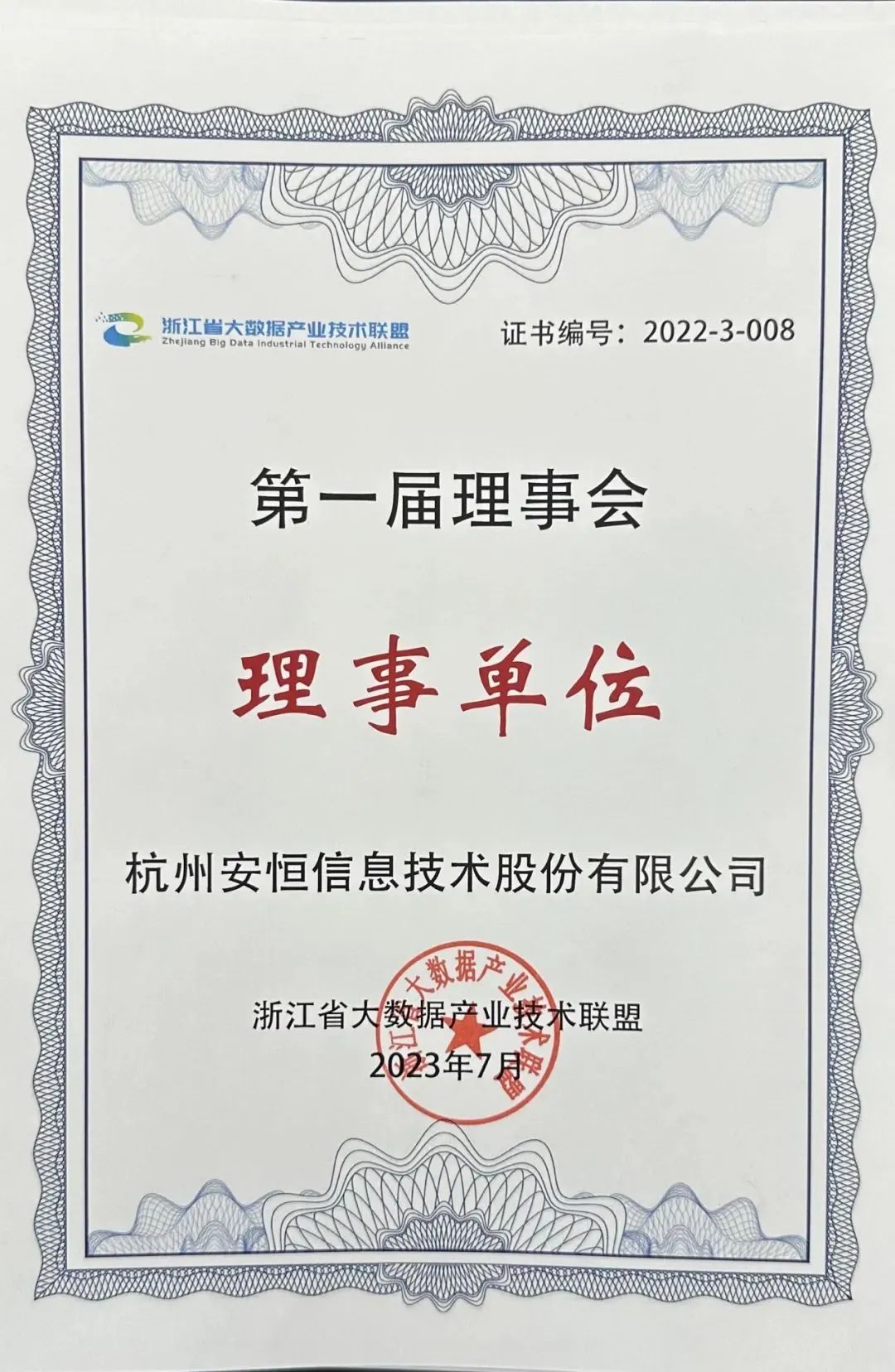 安恒信息当选浙江省大数据产业技术联盟理事单位