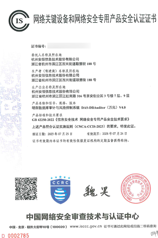 明御数据库审计与风险控制系统完成了去centos的工作,使用安恒自研的操作系统DAS-OS-E,实现了操作系统国产化。