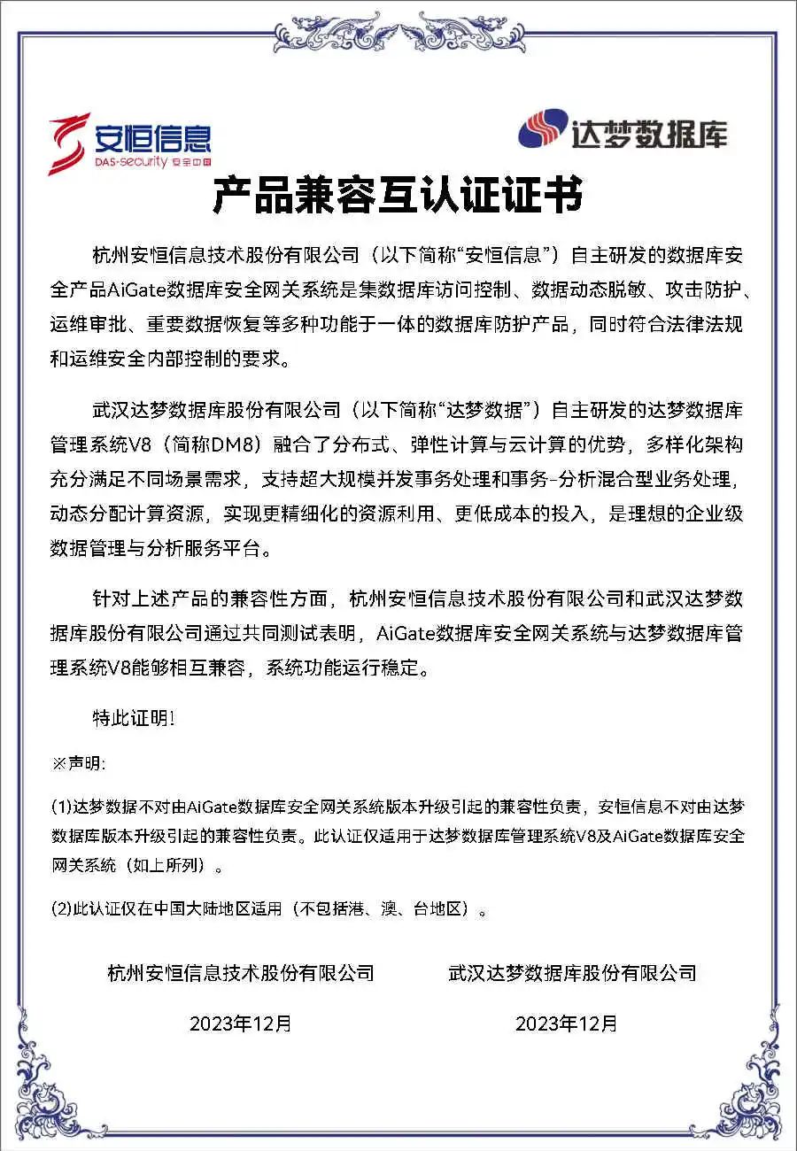 3月,安恒发布全新系列产品:安恒数盾安全隔离产品;包含安恒数盾网闸(AiGAP)、光闸(AiFGAP)、交换平台(AiDEP)。全方位为客户提供多安全域之间的数据交换及隔离的专业解决方案。产品适用于全行业全场景,获得包括软著、销许、CCRC、GA\T 1788.3等专业认证证书,并且产品性能及稳定性位于行业前列。