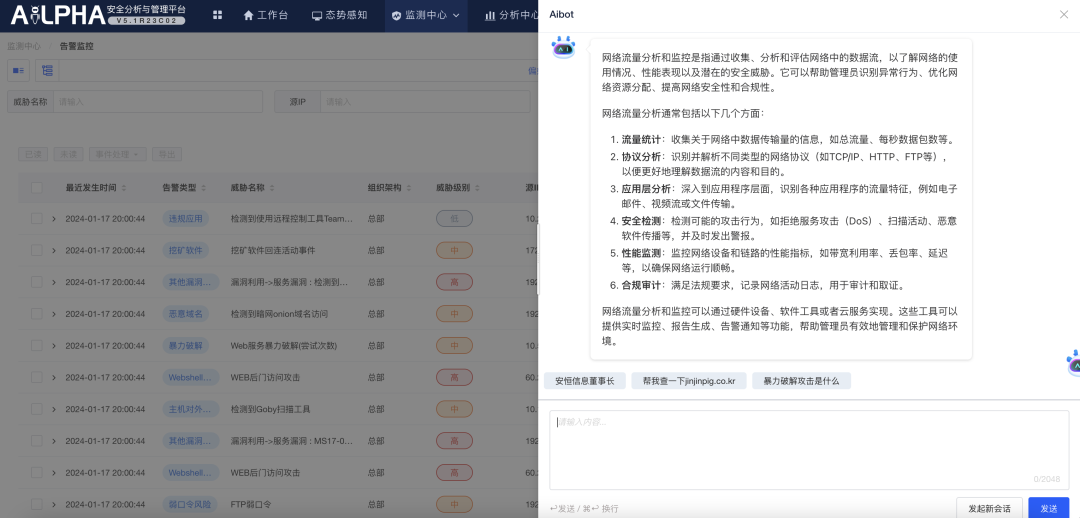 2023年,国家先后出台多项网络安全法规和政策,不断夯实网络安全保障能力和体系建设。安恒信息AiLPHA态势感知产品线步履坚实,紧跟政策导向,找准发力方向,扎实推进AiLPHA态势感知向更高层次迈进。