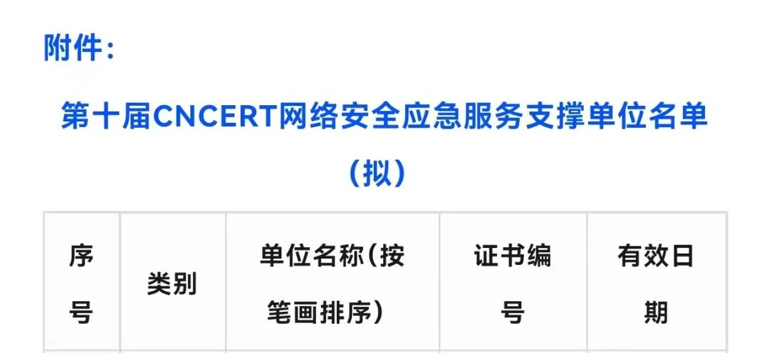 近日,国家互联网应急中心CNCERT公布了第十届CNCERT网络安全应急服务支撑单位遴选结果,安恒信息成功入选甲级名单。