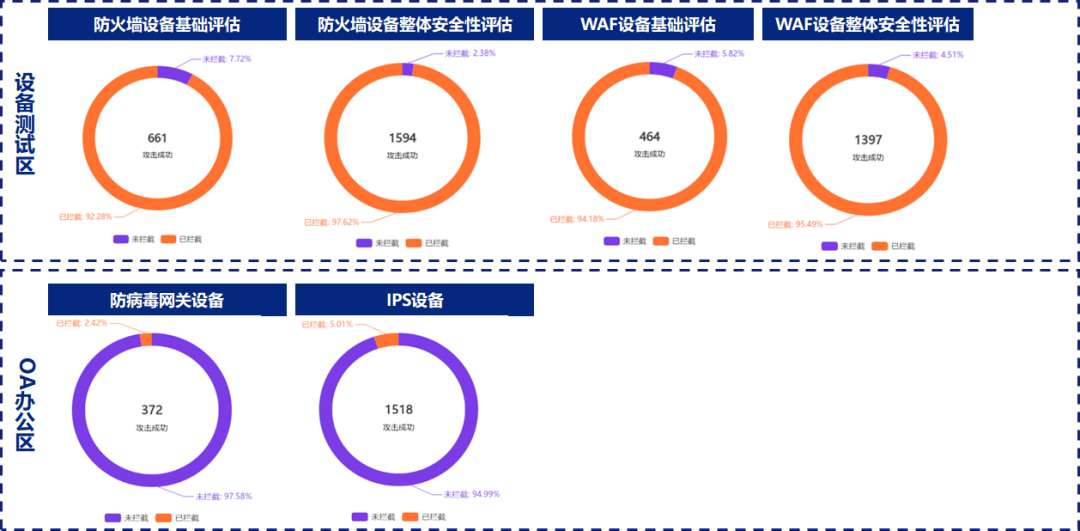 安全评估给用户领导清晰表明了目前安全建设的成果和不足,比传统安全建设成果及短板梳理提升了近80%的人效比,且总体看来,针对常见高、中危攻击向量,用户未拦截率仅0.2%,整体安全建设已处于较高水平状态。