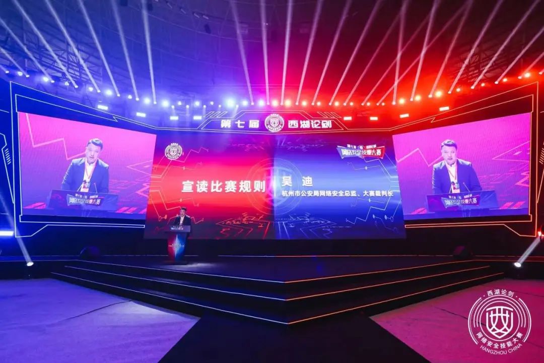 杭州市公安局网络安全总监、大赛裁判长吴迪宣读比赛规则