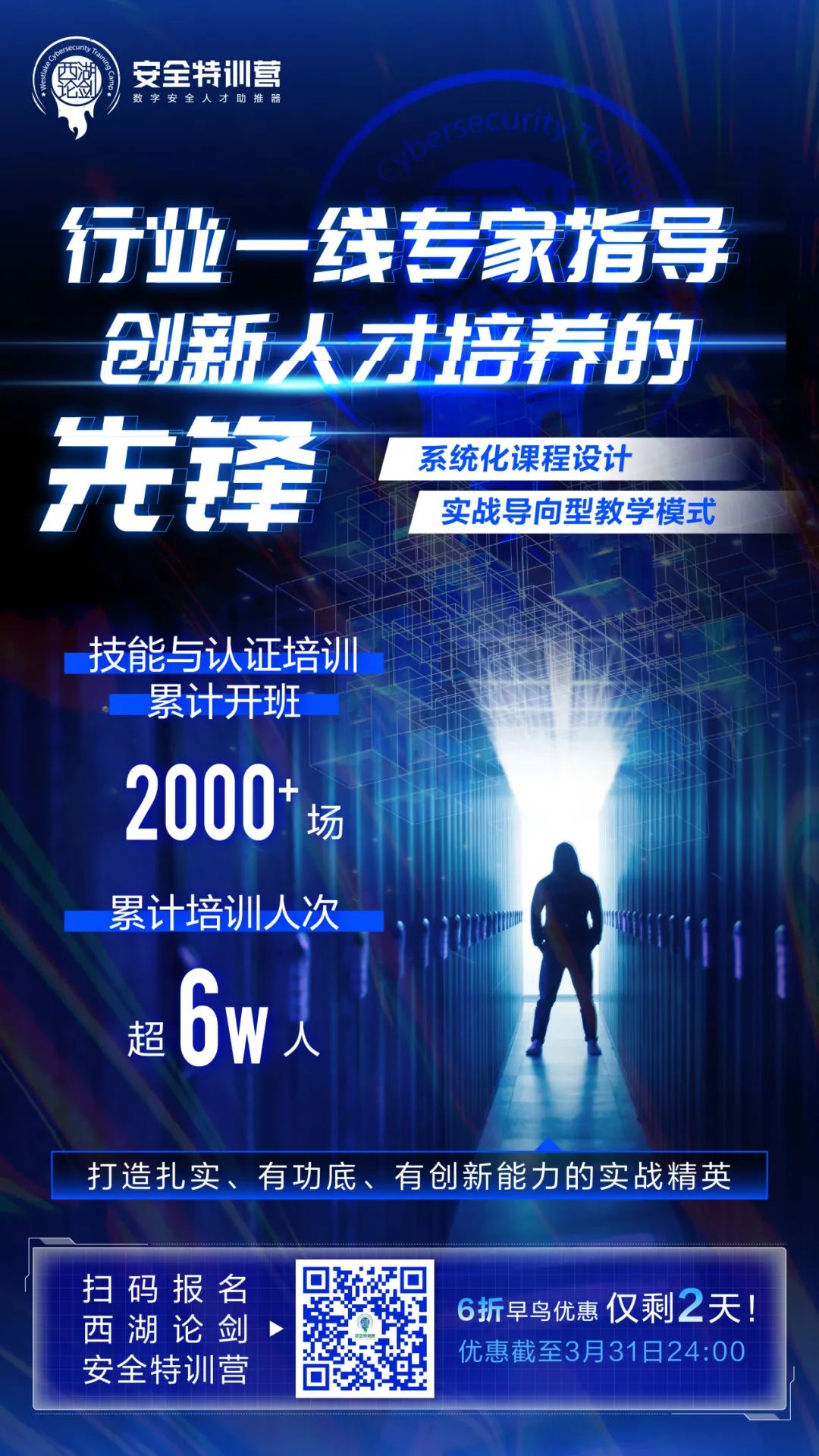 早鸟价倒计时2天!西湖论剑·安全特训营等你来