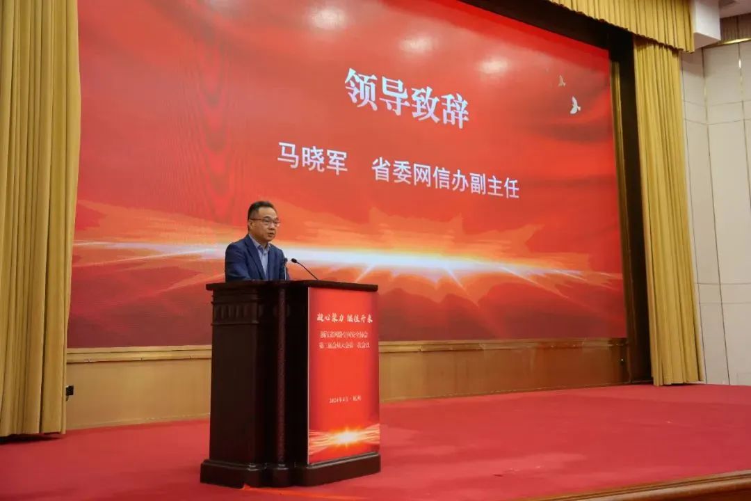 近日,浙江省网络空间安全协会第二届会员大会第一次会议在杭州召开,近180家会员单位代表、数十位特邀专家、嘉宾莅临现场。浙江省委宣传部副部长、省委网信办主任张才方出席会议并讲话,省委网信办副主任马晓军出席会议,本次大会由协会秘书长吴铤主持。安恒信息作为协会会员单位深度参加本次大会并获颁多项荣誉,安恒信息董事长范渊受邀出席现场并发言。