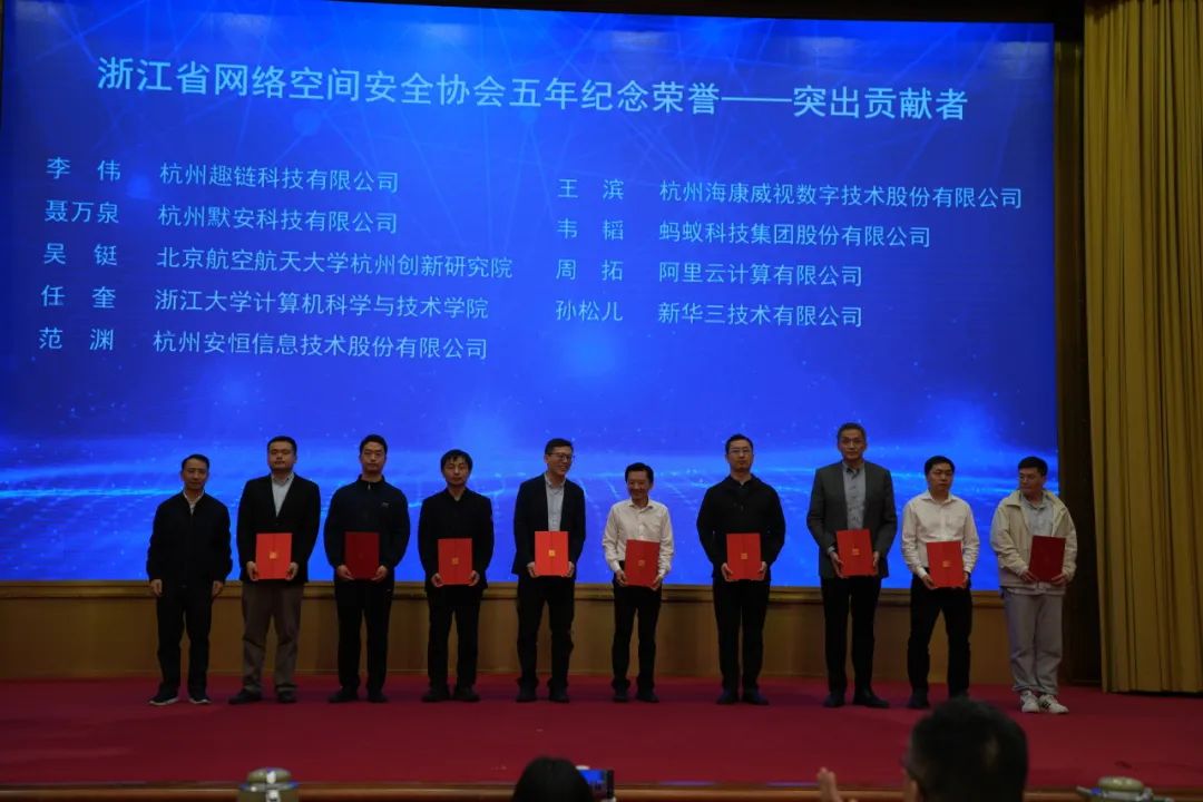 此外,安恒信息董事长范渊等人分别荣获五年纪念荣誉——突出贡献者、杰出会员、突出贡献专家、优秀联络员等奖项。