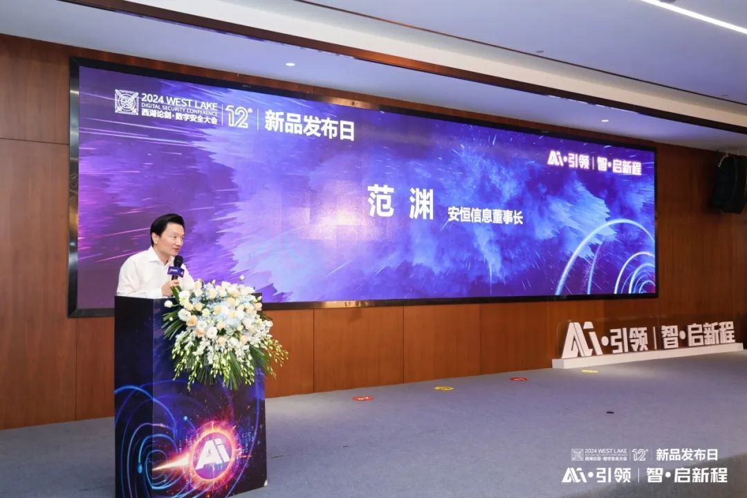 4月19日,以“AI·引领 智·启新程”为主题的2024西湖论剑暨安恒信息年度新品发布会举行,来自产业界、投资界、财经界、媒体界等多方代表共同见证。