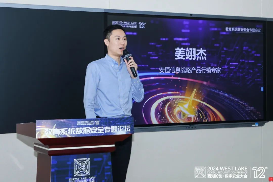 安恒信息战略产品行销专家姜翊杰,从技术视角分享了安恒信息如何助力教育系统完善数据安全体系建设,提出内循环与外循环概念,结合数据的流动方式,过程中的风险控制等技术应用,融入数据分类分级,师生敏感数据流转监测,核心数据库的运维管控等教育系统重点场景,提出了安恒“全智联”数盾2.0解决方案,并详细阐述了AI+数据安全在教育系统的多个落地案例及成果。同时,姜翊杰认为,实现业务驱动、价值驱动是教育主动自发构建数据安全防护体系的前提。