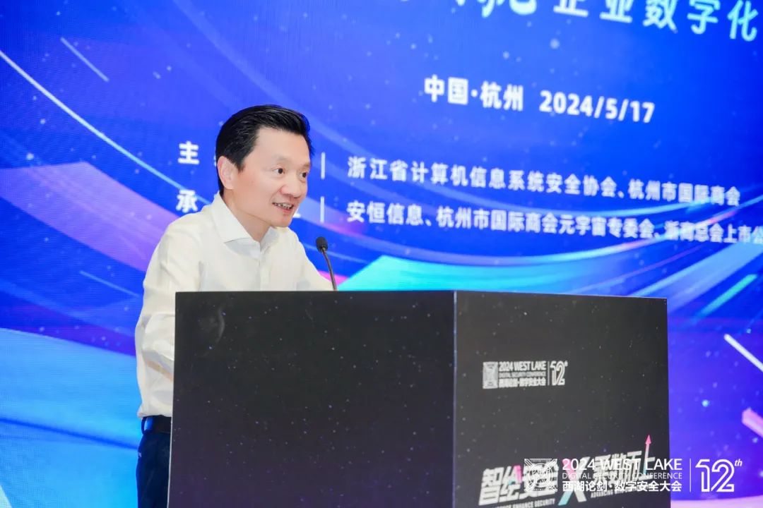 5月17日,2024西湖论剑·企业数字化与数据出海流通专题会议成功举行。中国网络安全审查技术与认证中心原党委书记、副主任王连印,杭州市贸促会、国际商会副会长宋斌,杭州市贸促会二级巡视员、国际商会副会长沈小艇,杭州市工商联二级巡视员陈刚,中国移动通信有限公司研究院副所长粟栗,安恒信息董事长范渊,海亮集团数字创新部部长孙雯,CSA大中华区数据安全工作组组长王安宇,北京其阳华夏科技有限公司副总经理王磊等出席本次专题会议。