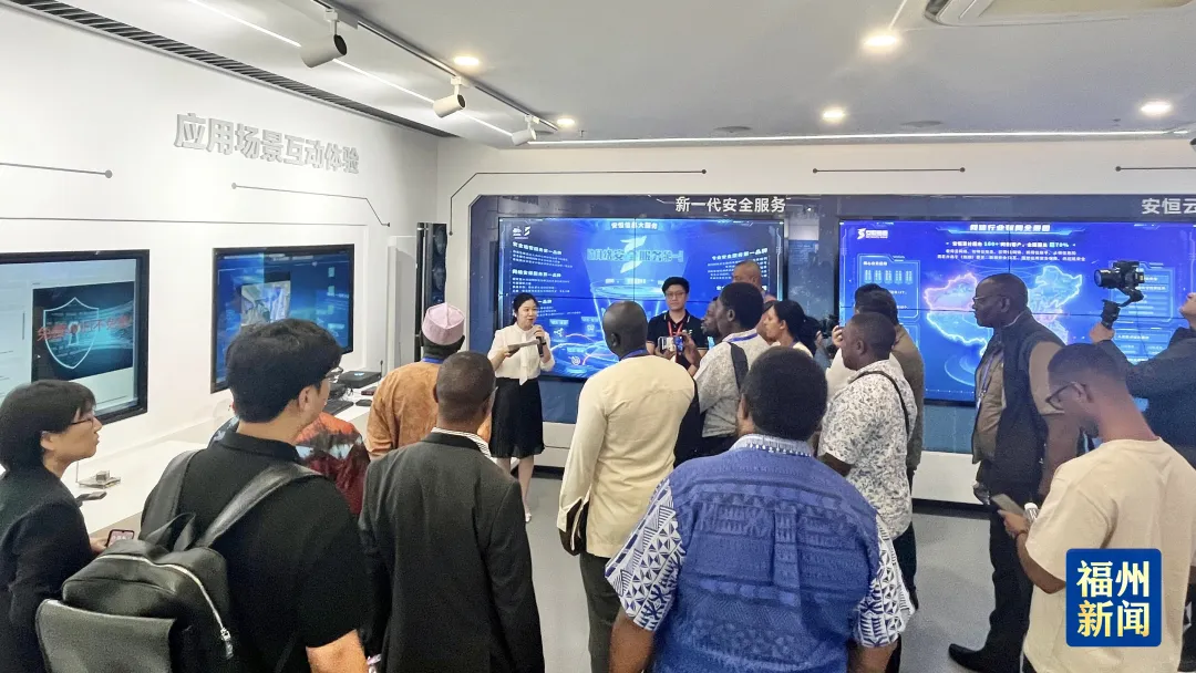 5月17日,由中华人民共和国商务部主办,国家广播电视总局国际合作司指导,国家广播电视总局研修学院承办的“一带一路”国家主流媒体高层管理人员研修班来到安恒信息福建分公司考察交流,重点参观了数字安全科普宣传展厅。作为福建省最大的数字安全科普宣传展厅之一,其占地面积近1700平米,展厅内容丰富,具备数字安全科普宣传板块、数字安全应用场景互动体验区。数字安全科普宣传展厅作为福州市网络空间安全中心的延伸,面向“一老一少”群体和广大企事业单位,宣传数字安全法律法规和科普常识,提升人民群众的数字安全意识,加强数字安全防范能力。