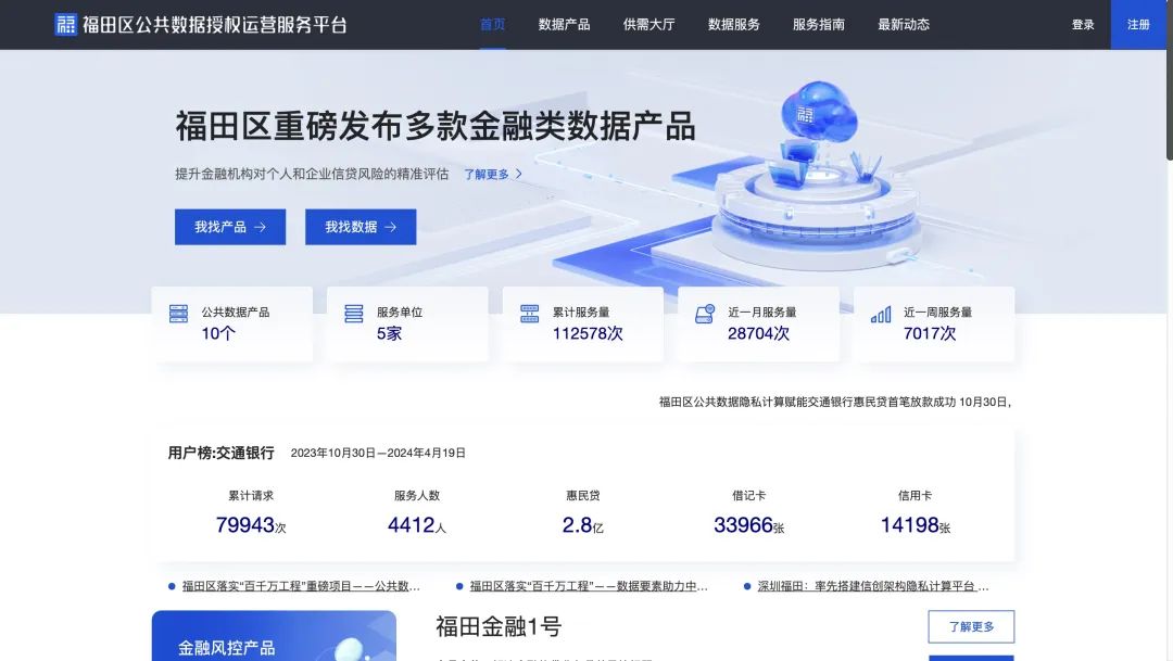 在模式上,上线了深圳首个公共数据授权运营平台,公开了可开放的公共数据资源清单,面向社会收集数据实际使用需求,与深圳数据交易所联合发布“福田区公共数据授权运营专区”,保证了公共数据用得好。其中,福田金融1号数据产品上线6个月,帮助交通银行新增4826名原来无法获批贷款或额度较低的个人或中小微企业主,获批贷款3.13亿元。
