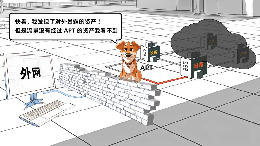 APT等流量设备能够实时监控内部资产对外暴露情况,但并非所有资产的流量都经过APT,这导致所收集到的资产数据并不全面。