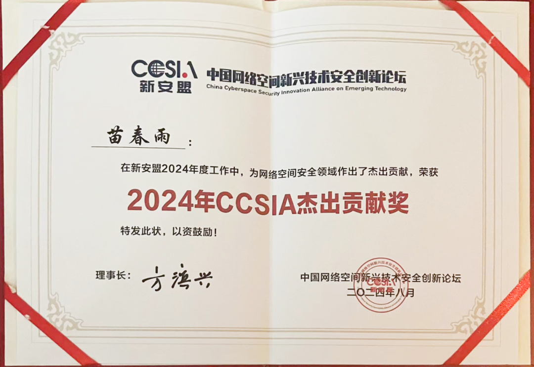 喜报!安恒信息数字人才创研院院长苗春雨荣获2024年CCSIA杰出贡献奖