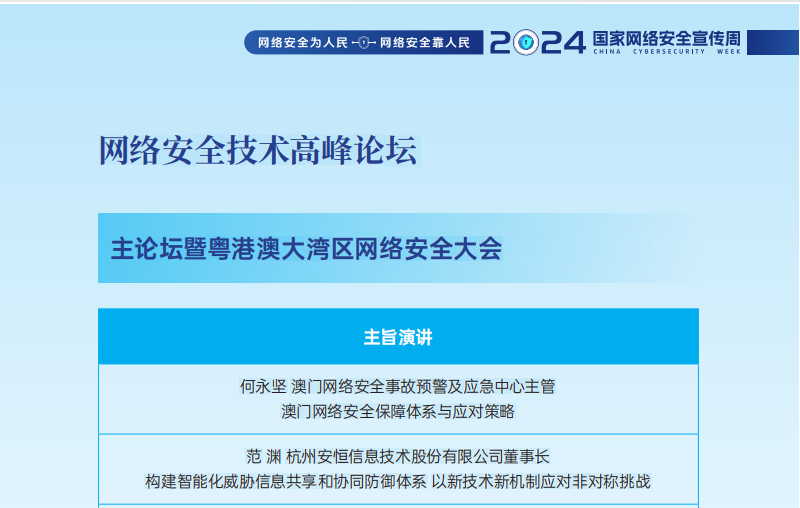 论坛名称:网络安全技术高峰论坛暨粤港澳大湾区网络安全大会
