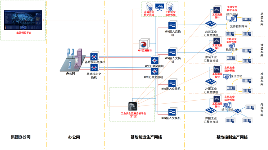 ➣构建集团-生产基地-生产车间多方参与的网络安全综合防控体系。
