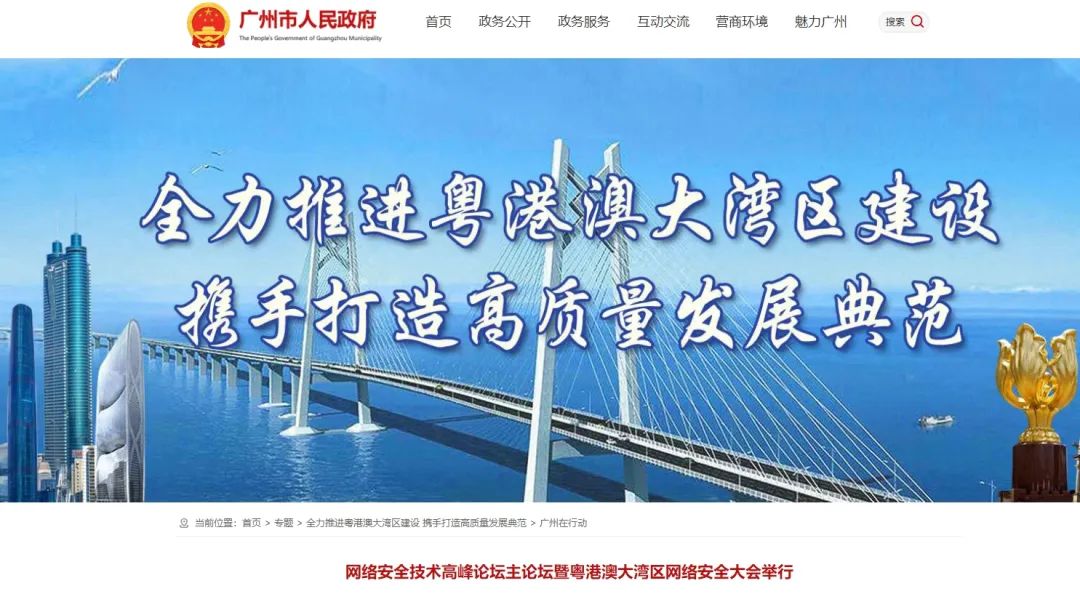 广州市人民政府官方网站、南方财经、广州日报等报道,9月9日网络安全技术高峰论坛主论坛暨粤港澳大湾区网络安全大会在广州南沙举行,安恒信息董事长范渊发表演讲。