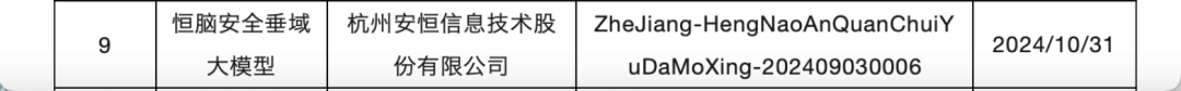 10 月 31 日,恒脑·安全垂域大模型以其卓越的性能和安全性,获得了生成式人工智能服务备案的官方认证。