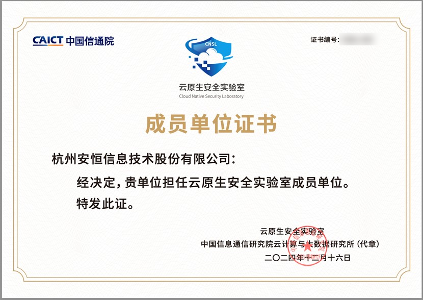近日,安恒信息荣获中国信通院颁发的“云原生安全实验室”成员单位证书,正式加入该实验室,携手推动云原生安全技术发展。