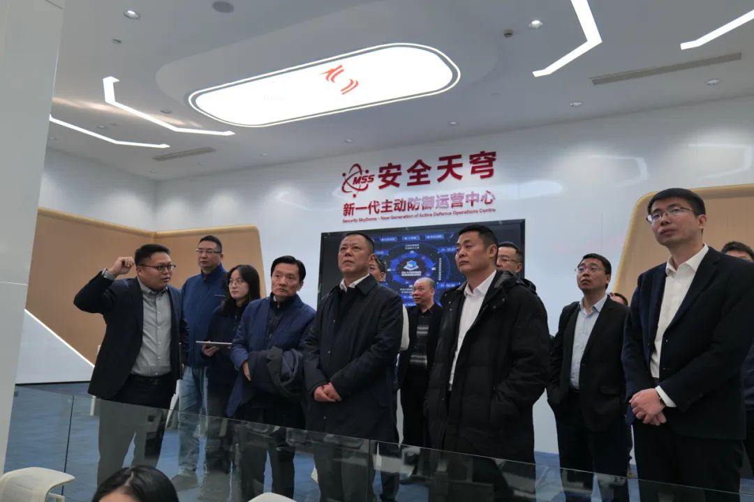 张涛一行首先来到安恒信息安全创新体验中心,在介绍中了解了关于安恒信息在数字安全领域的先进技术与实践成果。现场,安恒信息全面展示了在数据安全、人工智能、安全服务领域的相关技术、应用场景与创新实践。同时,张涛一行还参观了天穹安全运营中心,聆听了关于其在安全服务领域的综合实力以及在杭州亚运会期间的实践应用。