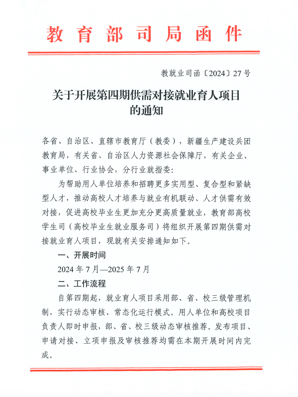 《关于开展第四期教育部供需对接就业育人项目的通知》
