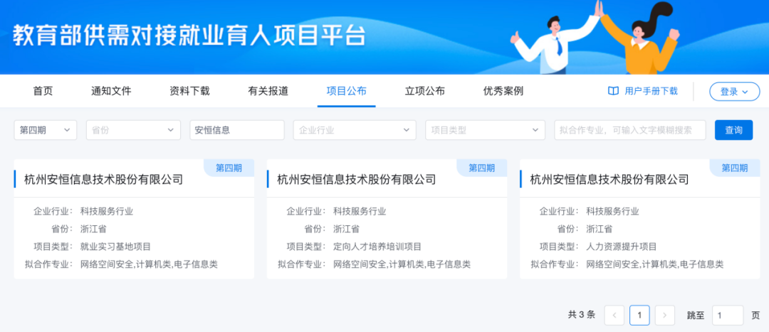 欢迎申报!教育部第四期供需对接就业育人项目——安恒信息项目申报指南发布