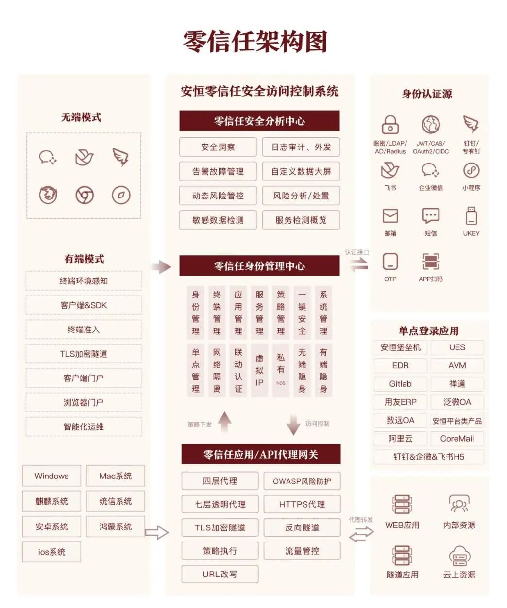 安恒信息AiTrust零信任基于零信任技术理念,实现了安全防护模式的创新转变。告别传统以网络区域边界为核心的防护模式,迈向接入安全场景,聚焦身份安全合规的全新架构,完成可信验证后可构建访问连接,精心打造可信身份网络与零信任安全基石。