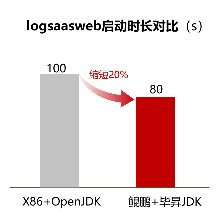 在流水线执行过程中充分运用迁移扫描门禁、毕昇JDK、鲲鹏测试框架、Java性能分析、版本漏洞扫描插件等能力,代码开发移植及代码运行效率提升1.5倍,平台整体性能提升15%;以logsaasweb启动为例,前期通过OpenJDK启动耗时100s,切换毕昇JDK后启动耗时80s,整体时间缩短20%。