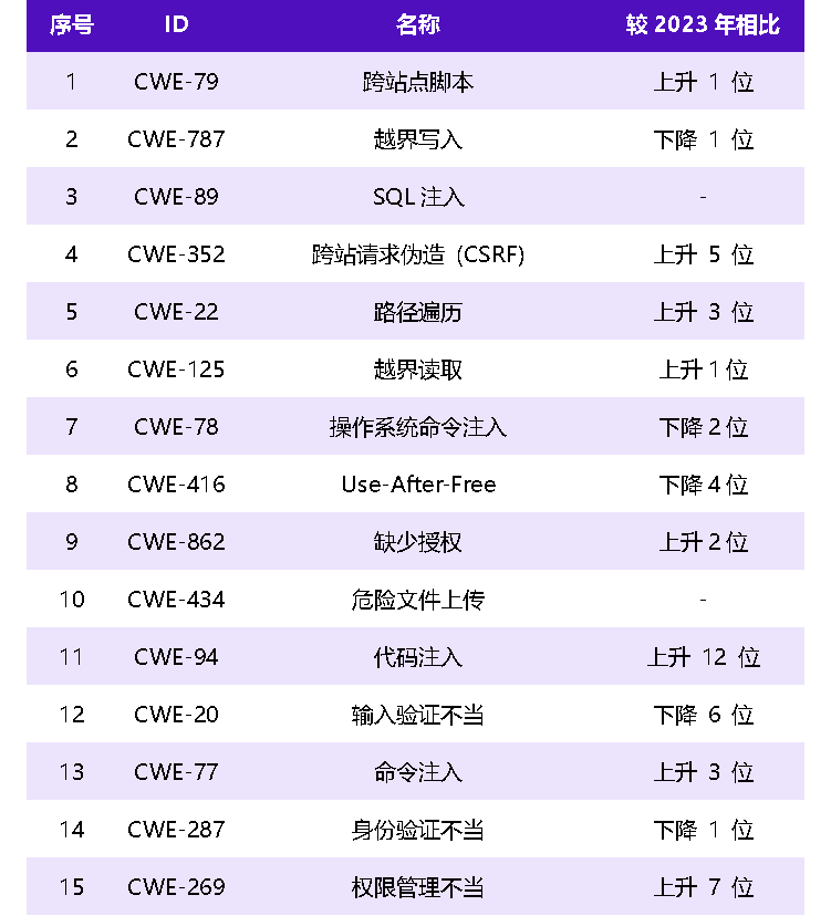 报告中对2024年度CWE Top25榜单进行了深度解读,从各漏洞类型的排名浮动出发,对当下网络安全的威胁分布进行了详尽分析。