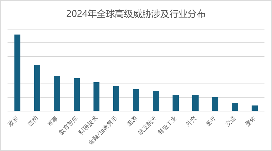 政府部门作为情报收集和政治影响的核心目标,其敏感信息和决策流程始终是APT攻击的重点。然而随着全球冲突的加剧,国防领域成为攻击者优先级最高的目标。这些行业的共同特点在于,其网络防御一旦被突破,可能引发重大的社会、经济和政治后果。