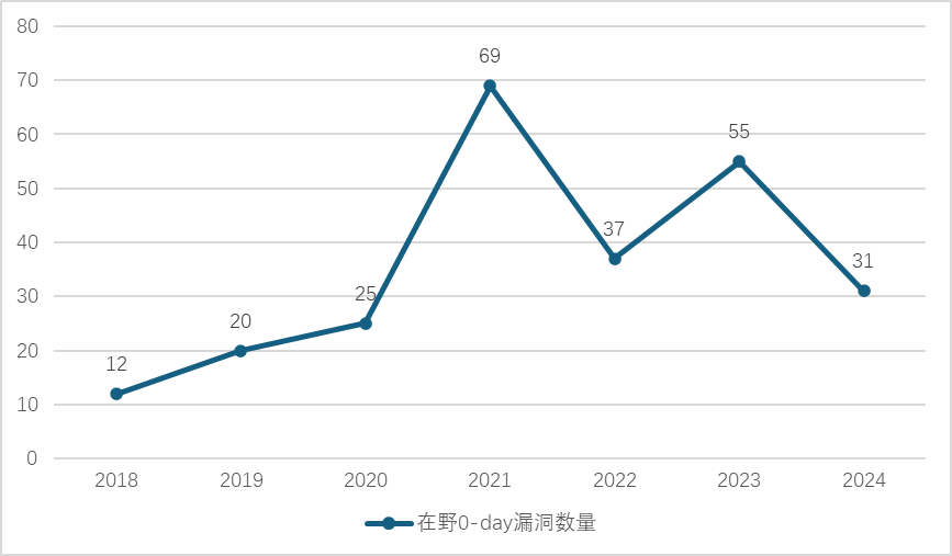 2024年,全球厂商全年一共披露主流厂商的在野0-day漏洞31个。其中CVE-2024-30051这个Windows内核提权在野0-day漏洞由安恒信息捕获。