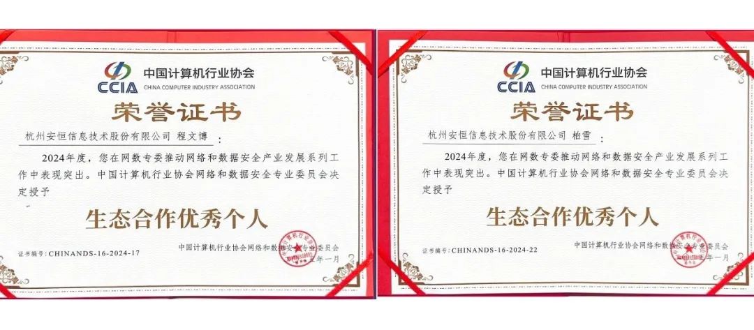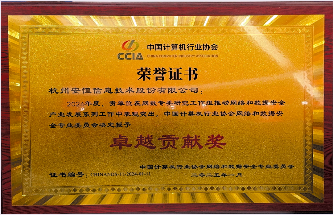 年度十佳!卓越贡献!安恒信息获网数专委多项荣誉