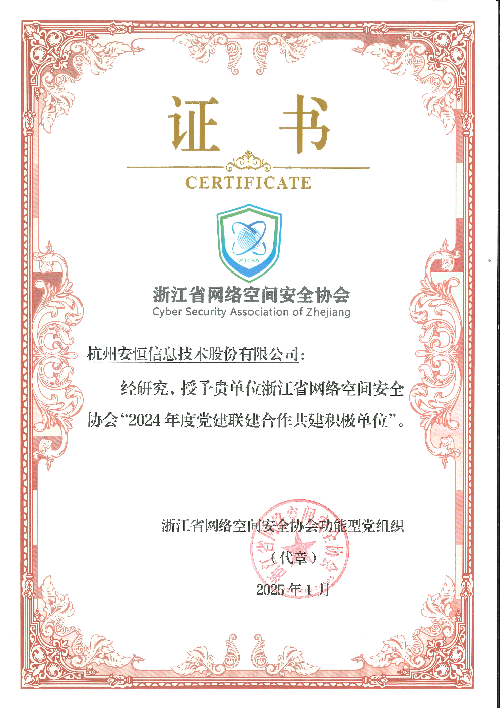 作为诞生于浙江省的数字安全领军企业之一,安恒信息在过去一年中积极参与了多项由浙江省网络空间安全协会组织的活动和技术交流项目,全力提供技术支撑与多面协作,为构建更加安全、健康的浙江省网络空间贡献力量。