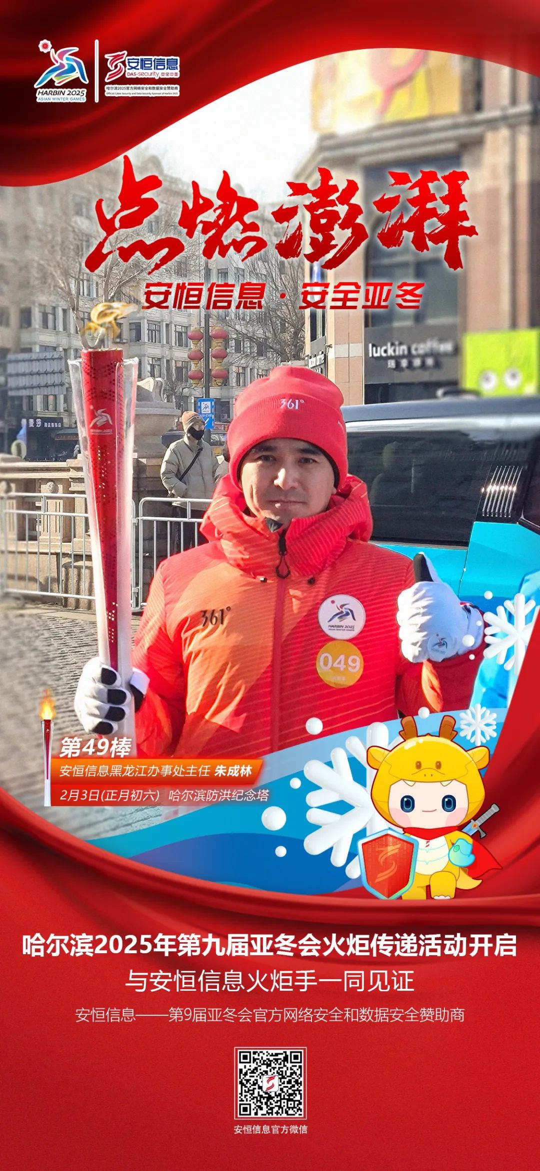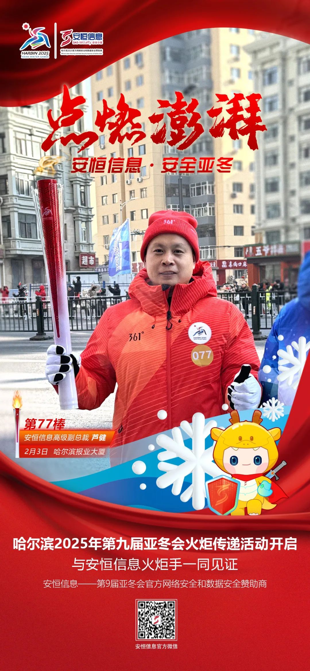 哈尔滨亚冬会火炬传递圆满完成!安恒信息火炬手激情开跑!