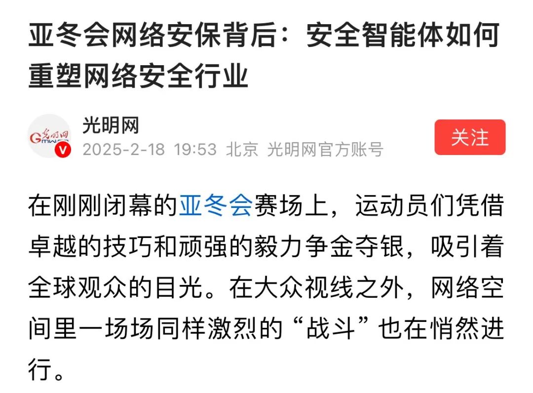 光明网丨亚冬会网络安保背后:安全智能体如何重塑网络安全行业
