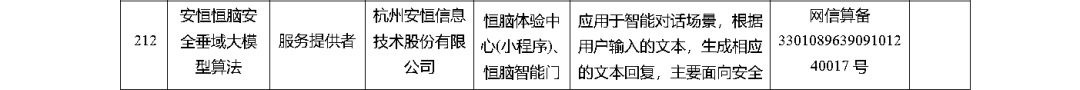 国家网信办发布,恒脑安全垂域大模型算法完成备案
