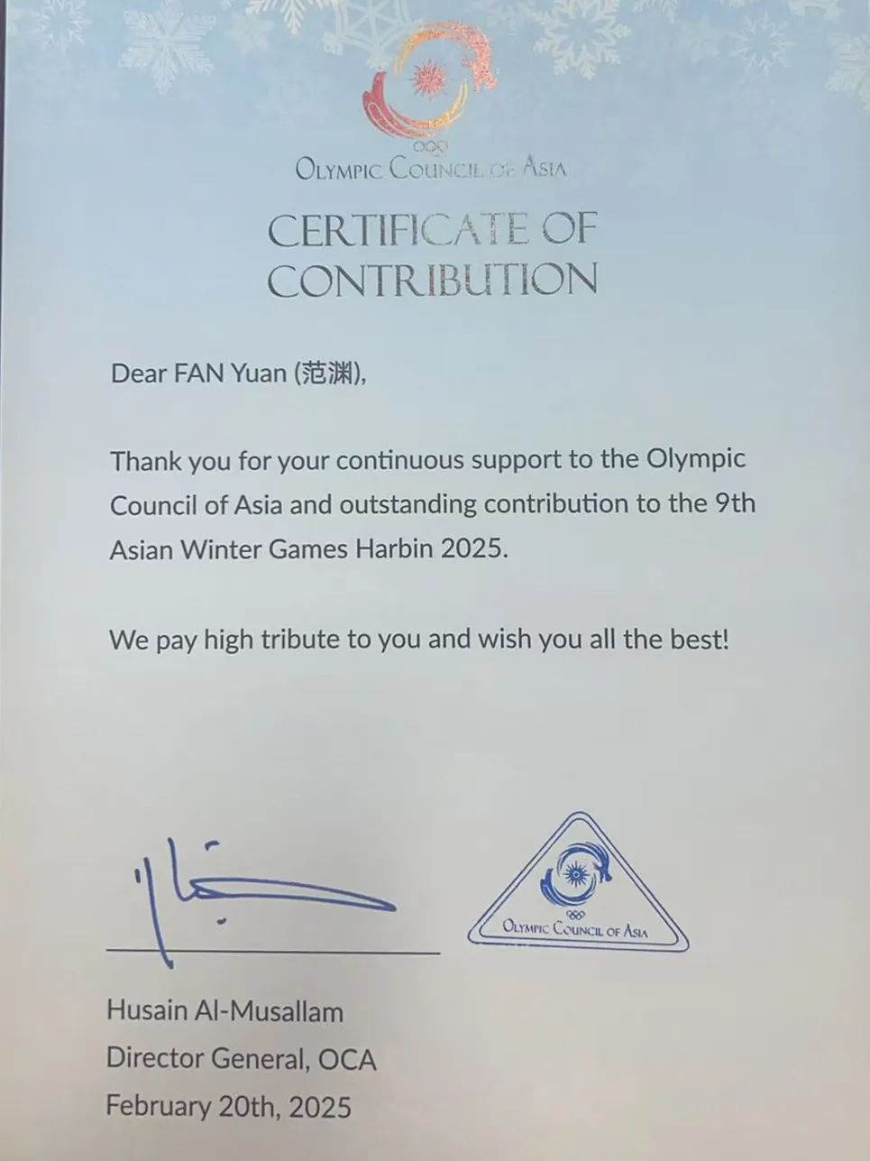 与此同时,安恒信息董事长范渊,首席安全官、高级副总裁袁明坤,黑龙江办事处主任朱成林分别收到亚奥理事会个人感谢信,彰显其卓越领导与专业贡献。
